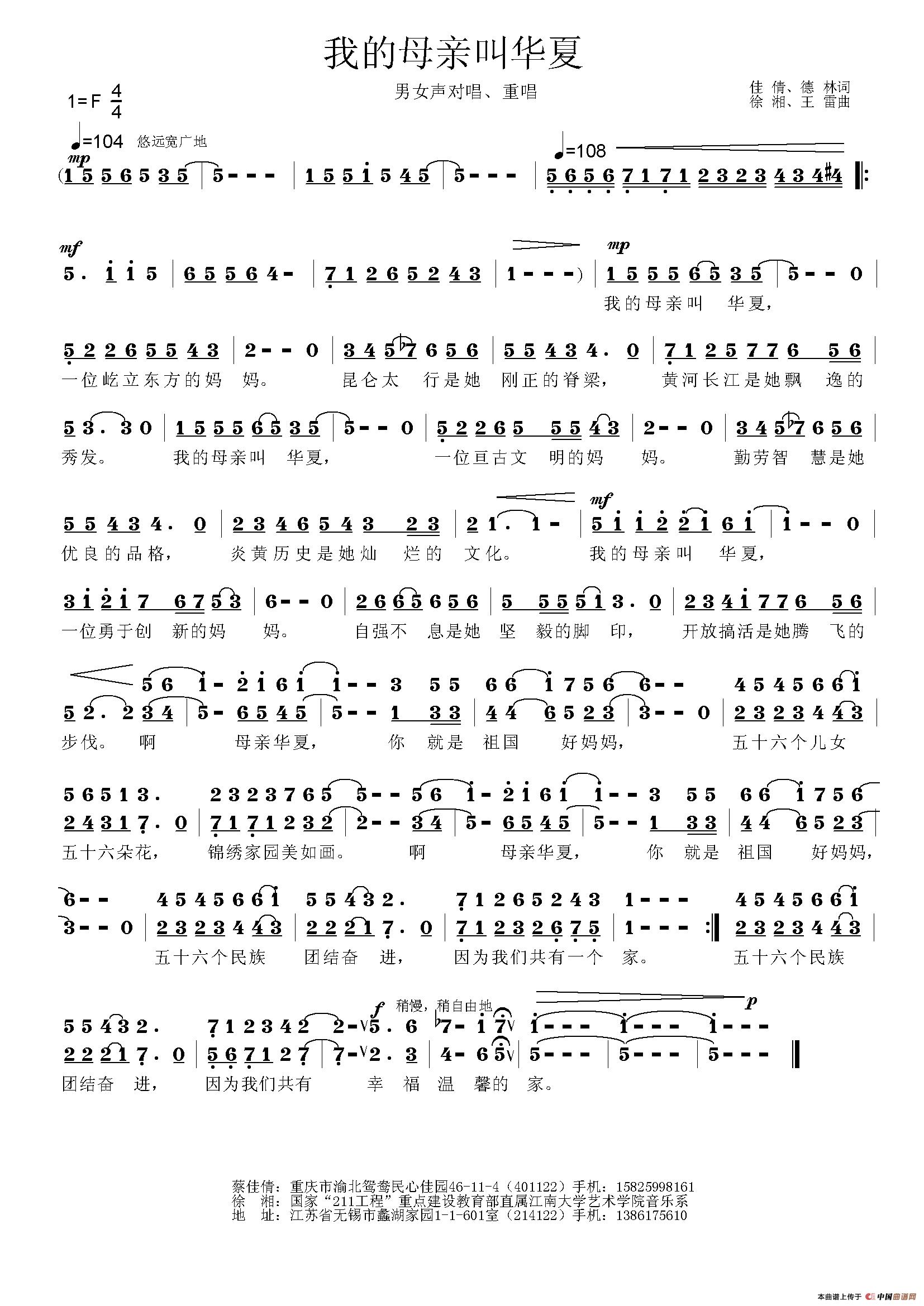 [七字歌谱]我的母亲叫华夏 顾璋、李梦婷