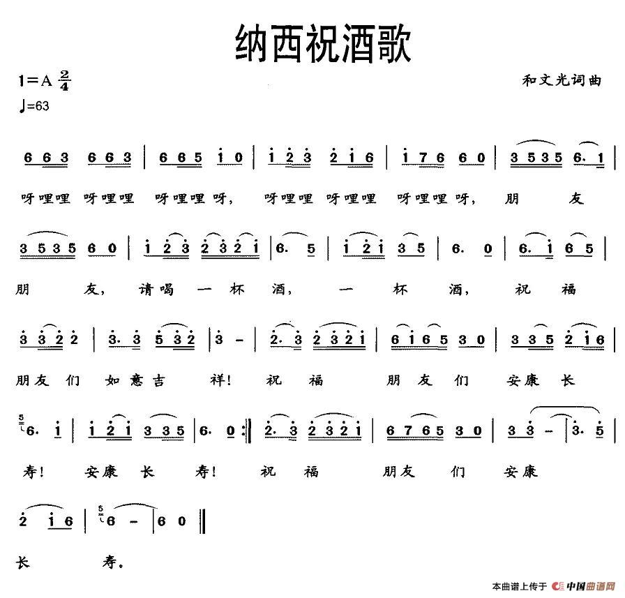 [五字歌谱]纳西祝酒歌 达坡玛吉