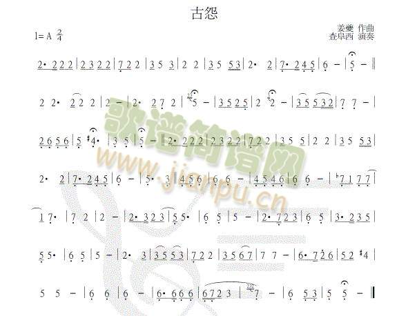 [钢琴谱](宋)姜白石:古怨(查阜西打谱 简线对照) 未知