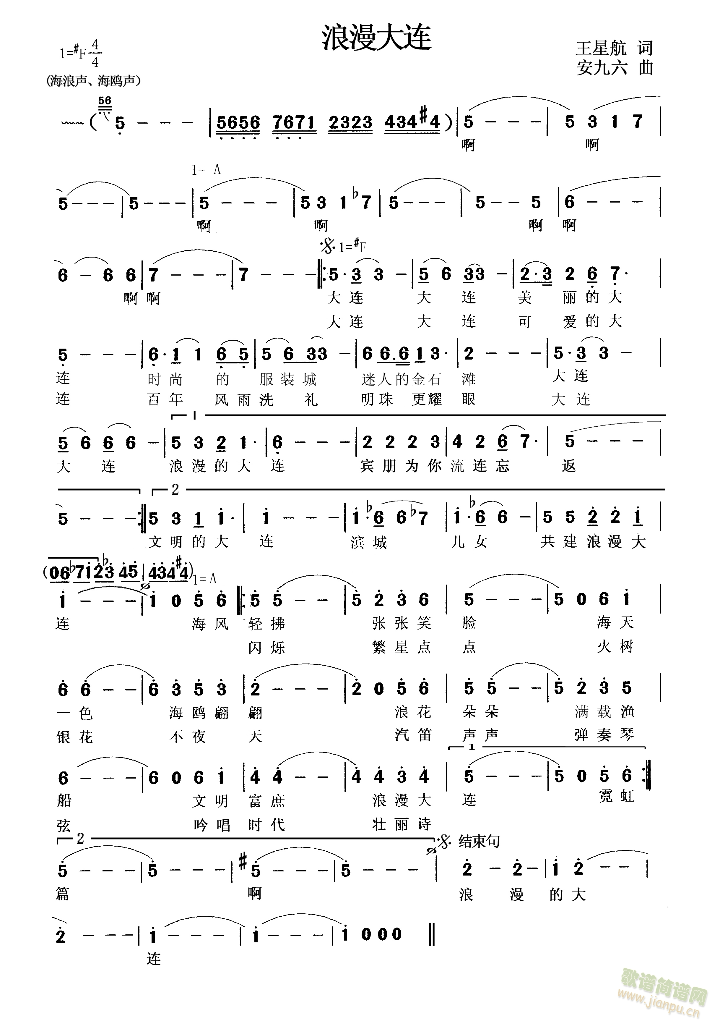 [三字歌谱]大连好(《大连漫游》主题歌)