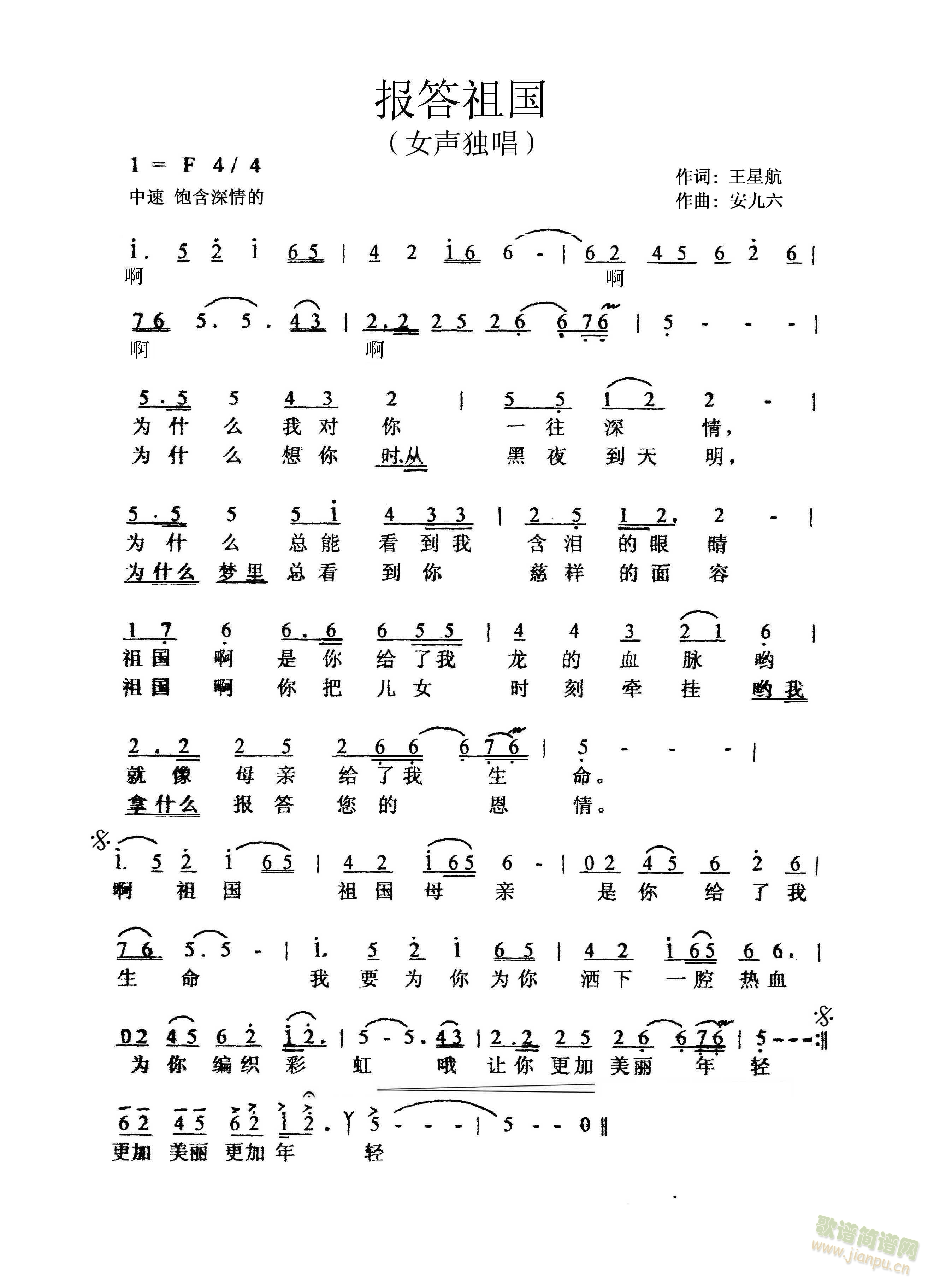 报答祖国(四字歌谱)1