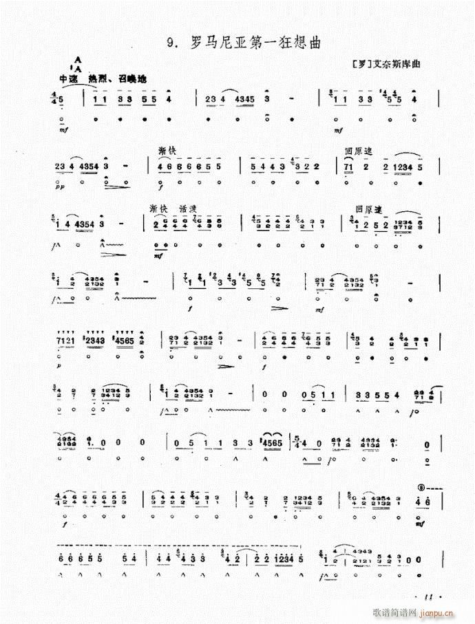 [电子琴谱](051)第一罗马尼亚狂想曲(罗 埃斯奈斯库曲)(五线谱)