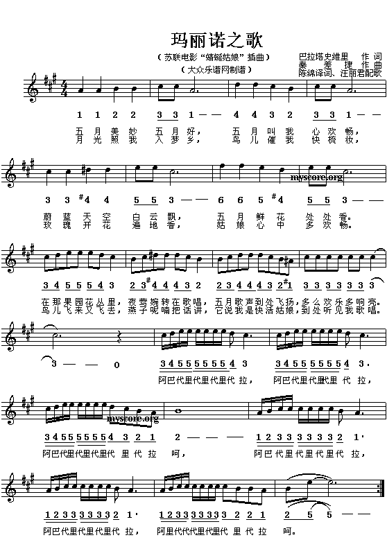 (前苏联)玛丽诺之歌(简线对照)