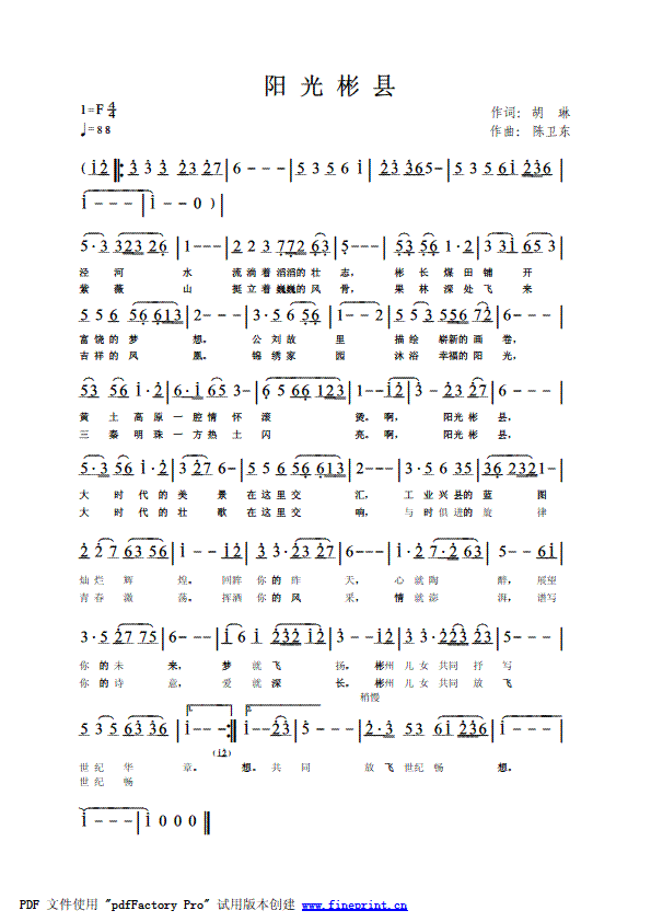 [四字歌谱]为胡琳女士的《 阳光彬县 》作曲(及音频已上!)