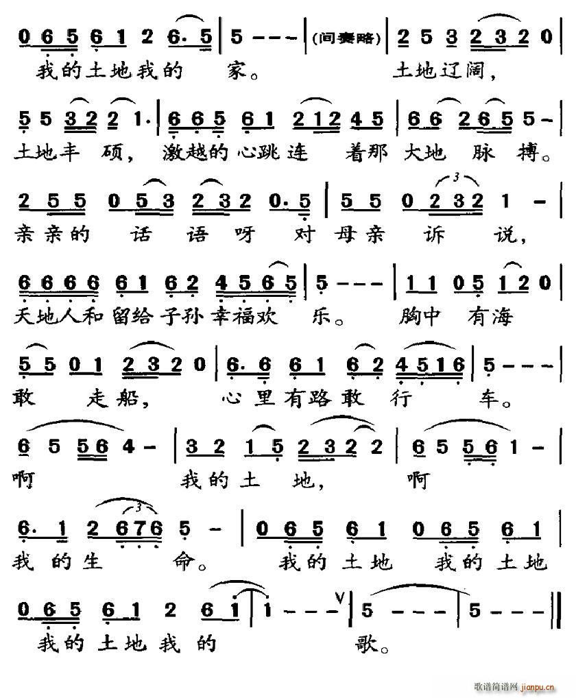 [七字歌谱]我的土地我的歌(电视剧《我的土地我的歌》主题歌)