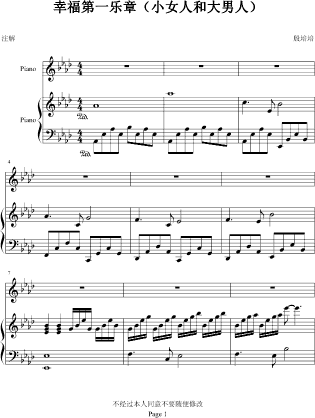 [钢琴谱]小女人和大男人 ぁ唐甜甜ぁ