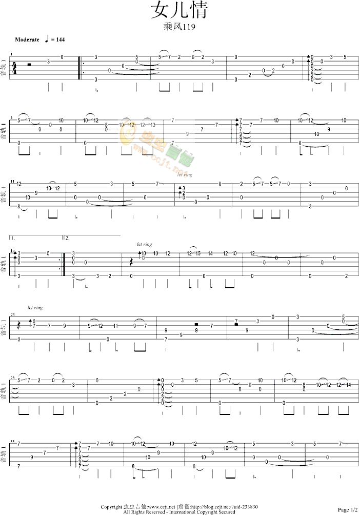 [二胡谱]女儿情(《西游记》插曲) 未知