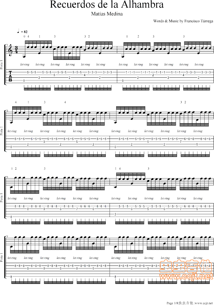 [吉他谱]阿尔罕布拉宫的回忆 弗朗西斯科·塔雷嘉