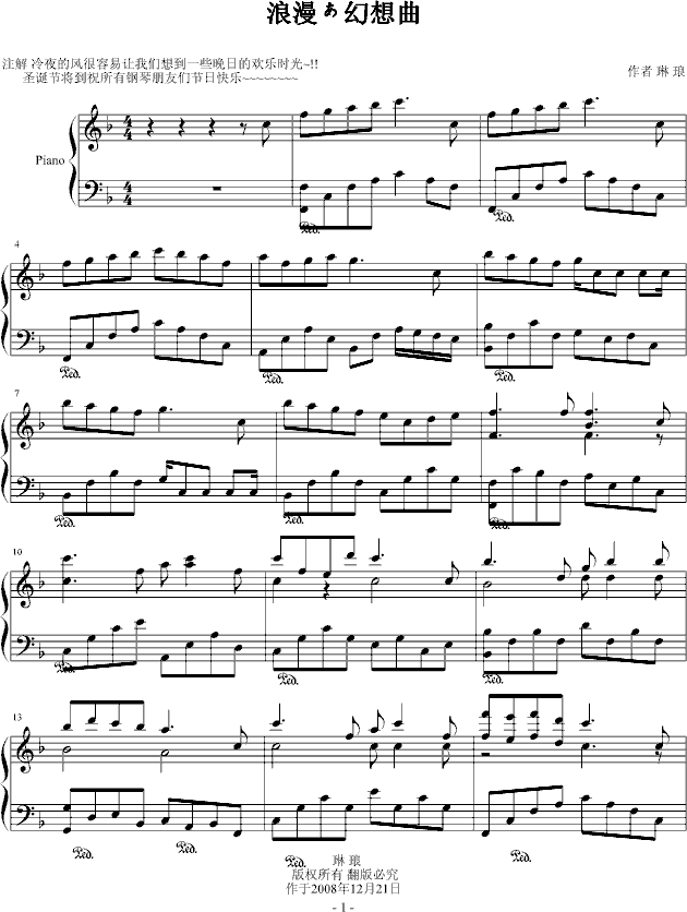 [钢琴谱]浪漫ぁ幻想曲 linlangkuaiyu08