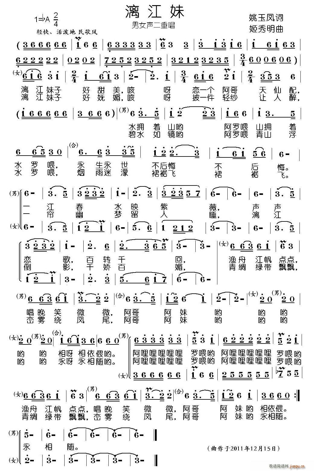 [三字歌谱]亲爱的(《AA制生活》片尾曲) 羽泉