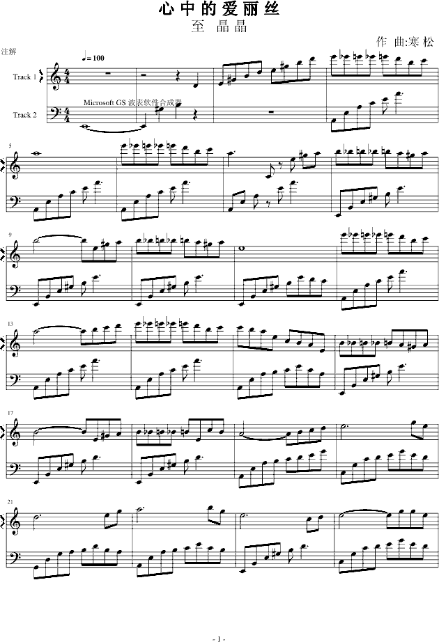 [钢琴谱]致爱丽丝(独奏版) 未知