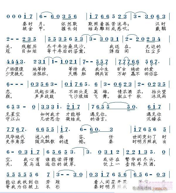 [四字歌谱]秦时明月 词:一斑、张辉虎 曲;不孤单