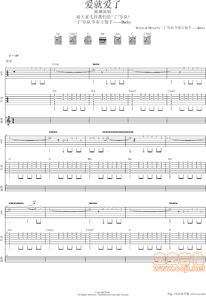 [七字歌谱]爱就爱了完整版 附带歌词 陈琳
