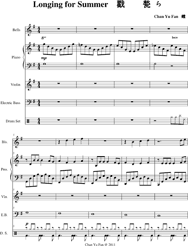 [四字歌谱]非常夏日 (张学友 王菲) 未知