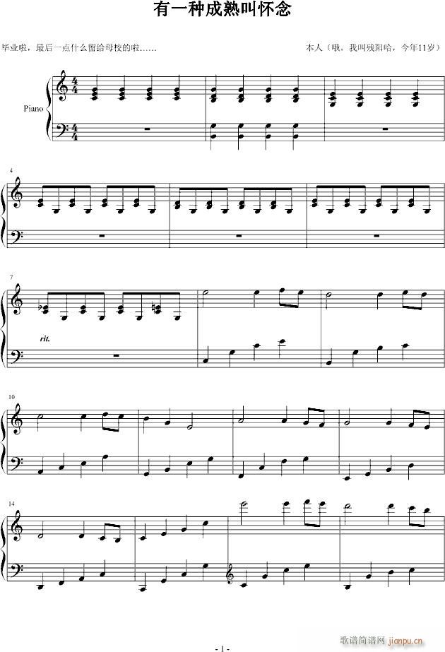 [钢琴谱]有一种成熟叫怀念 血腥残阳