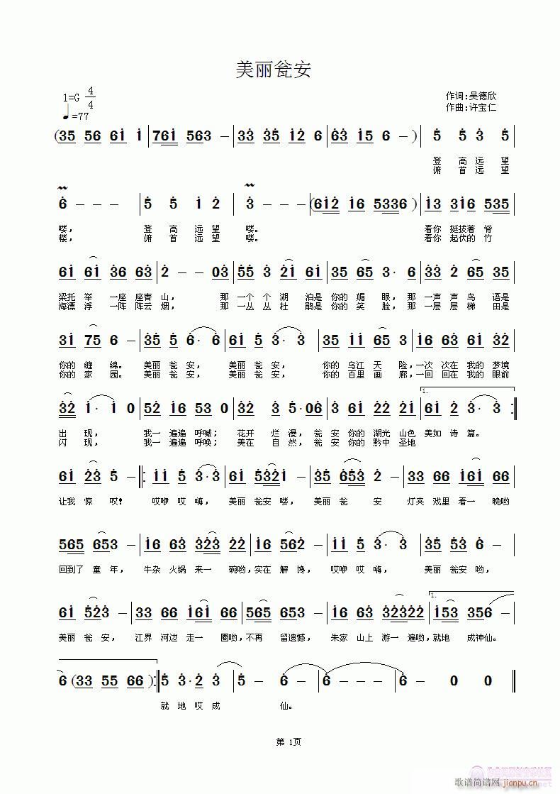 [四字歌谱]美丽瓮安 词吴鋘 曲许宝仁