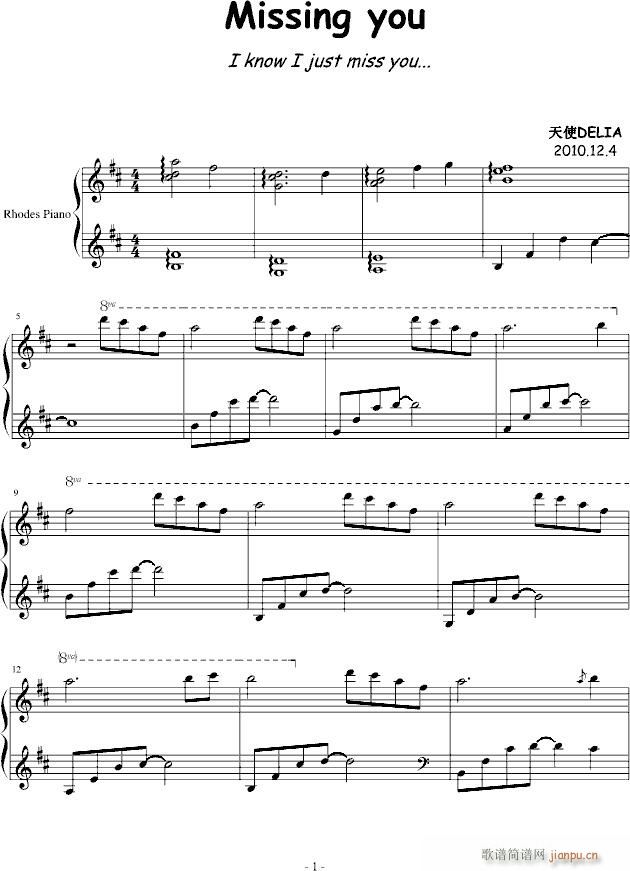 [钢琴谱]动画片《橙路》原声钢琴曲Missing-动漫影视 未知