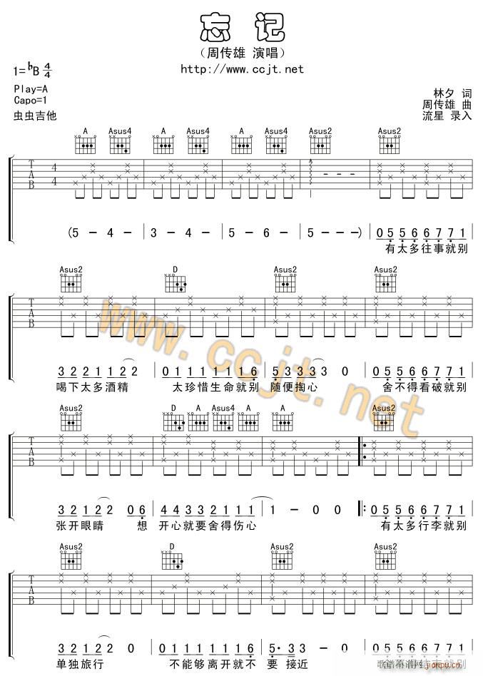 [二字歌谱]忘记 (小刚 羽泉) 未知