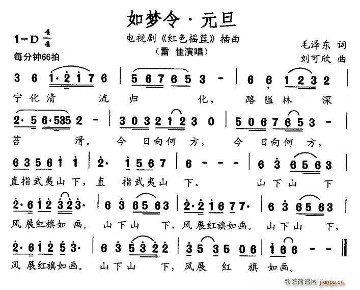 [六字歌谱]如梦令·元旦(电视剧《红色摇篮》插曲) 雷佳