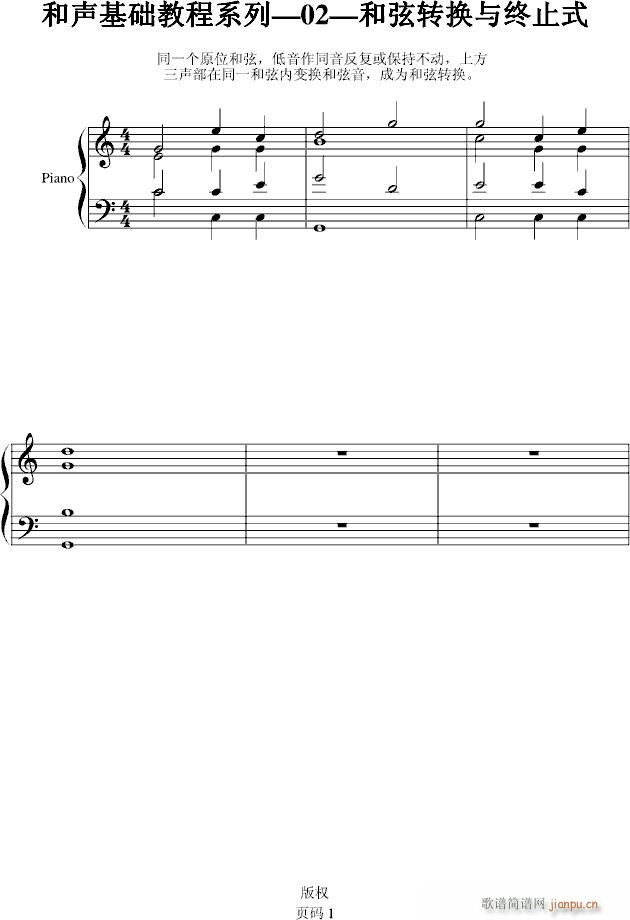 [钢琴谱]和声基础教程系列—02—和弦转换与终止式 教程综合