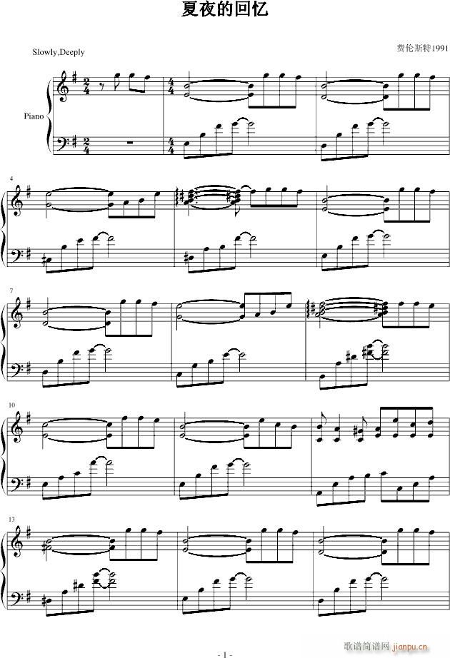 [钢琴谱]夏夜的回忆 费伦斯特1991