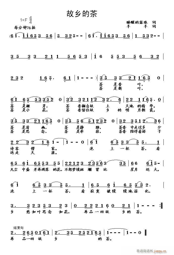 [四字歌谱][原创]《故乡的茶》(睡醒的露珠词 羊羊曲)