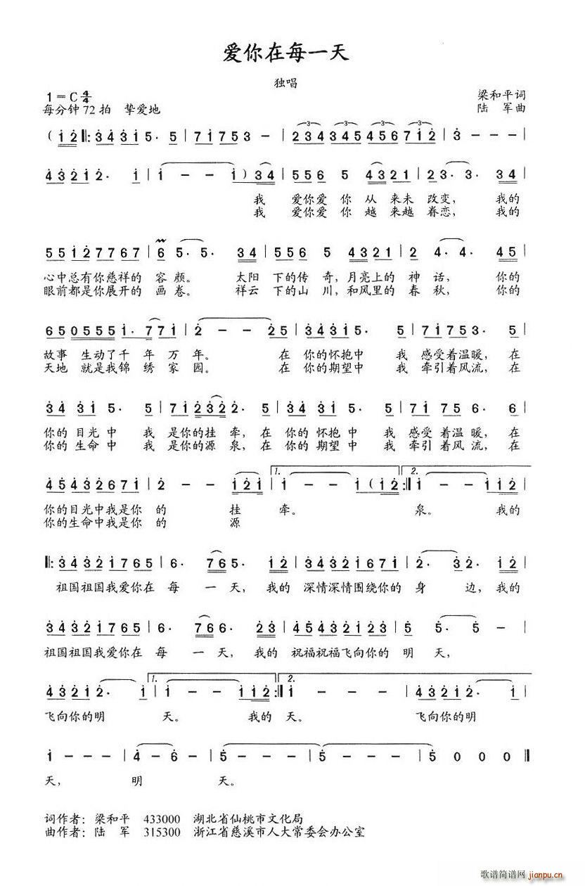 当前位置: 歌谱简谱网 > 六字歌谱 > 爱你在每一天