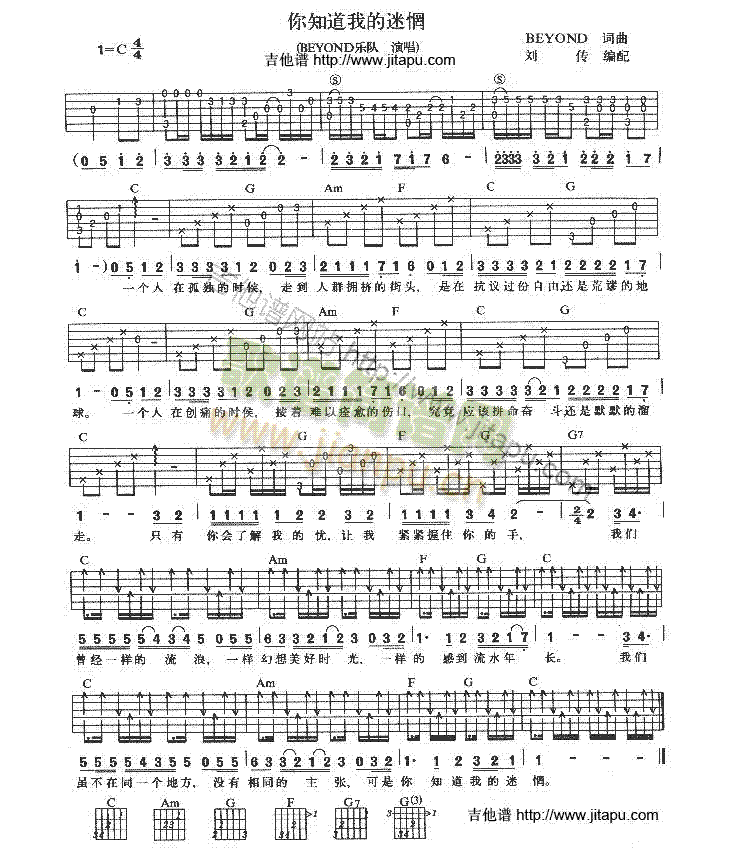 [吉他谱]你知道我的迷惘 吉他独奏谱(五线谱) 高飞改编