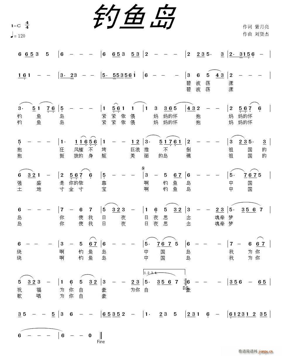 [五字歌谱]我叫钓鱼岛 紫竹心作词潘桂贤作曲