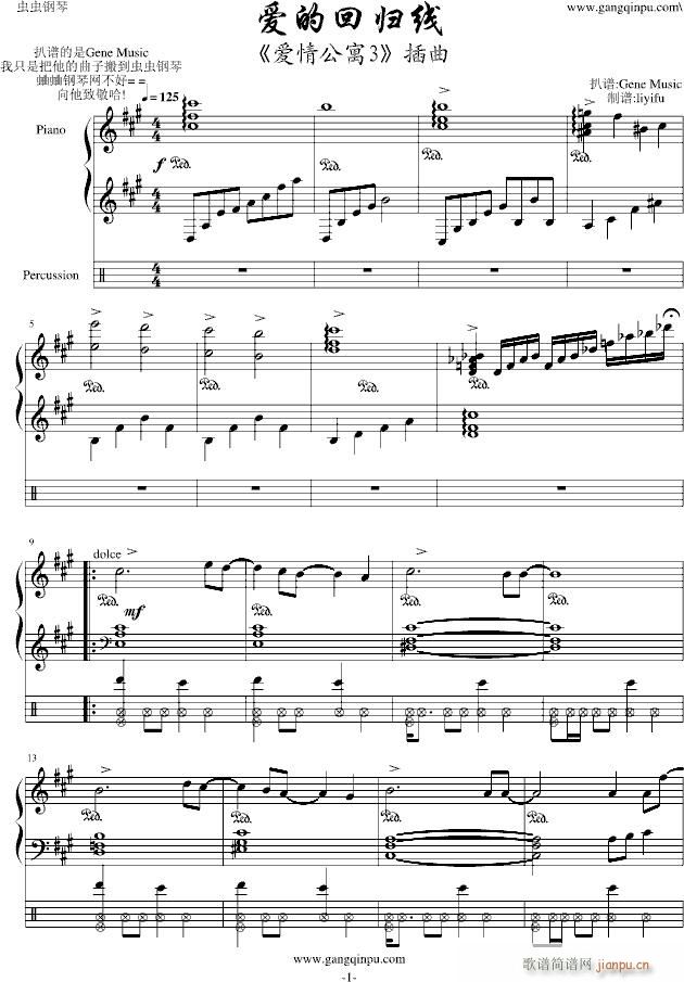[钢琴谱]爱的回归线-《爱情公寓3》插曲 陈每文