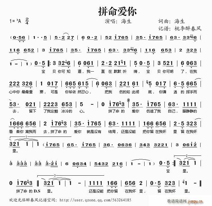 当前位置: 歌谱简谱网 > 四字歌谱 > 拼命爱你