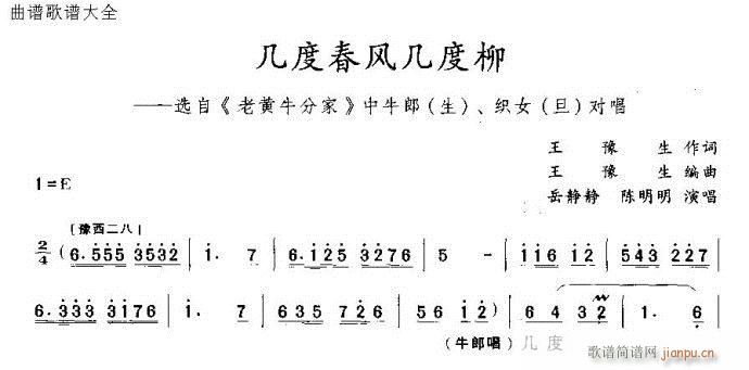 [豫剧曲谱]豫剧《七品芝麻官》选段:青纱轿里坐着我七品官 牛的草