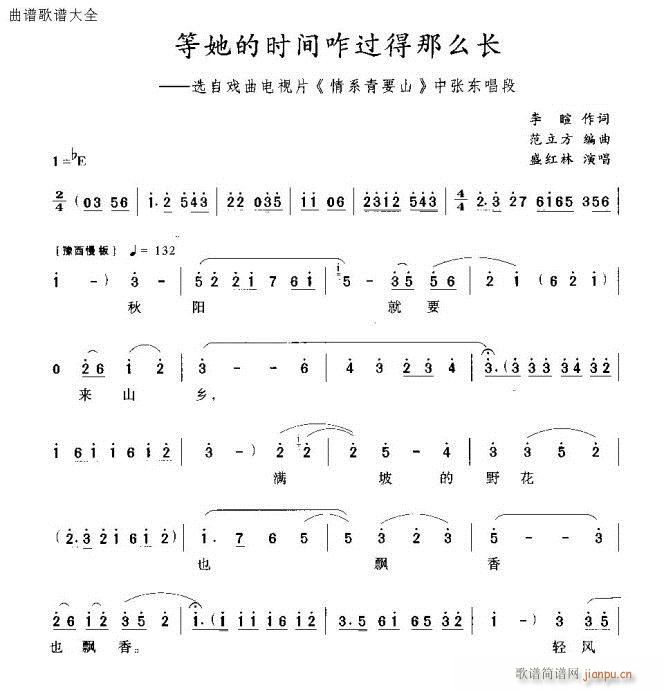 [豫剧曲谱]等她的时间咋过得那么长-豫剧