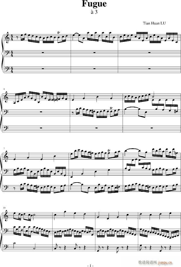 [钢琴谱]d小调赋格-钢琴谱(钢琴曲)-巴赫-P.E.Bach