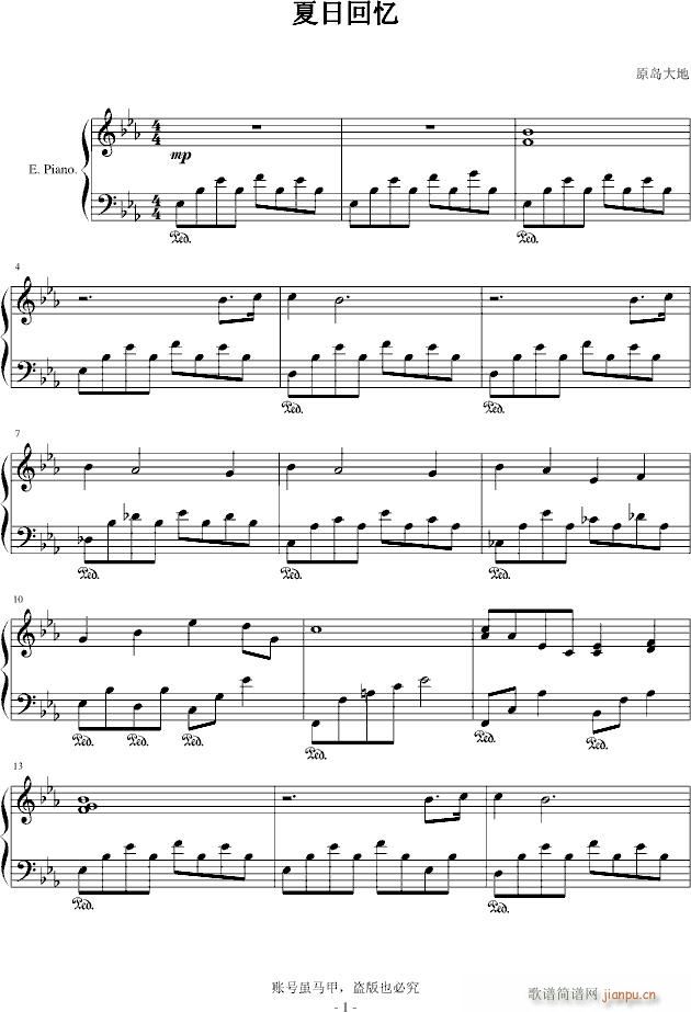 [钢琴谱]夏日の午后-钢琴谱(钢琴曲)-E大调的天空