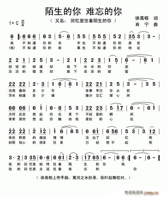 [四字歌谱]陌生的你 难忘的你(又名:回忆里住着陌生的你)
