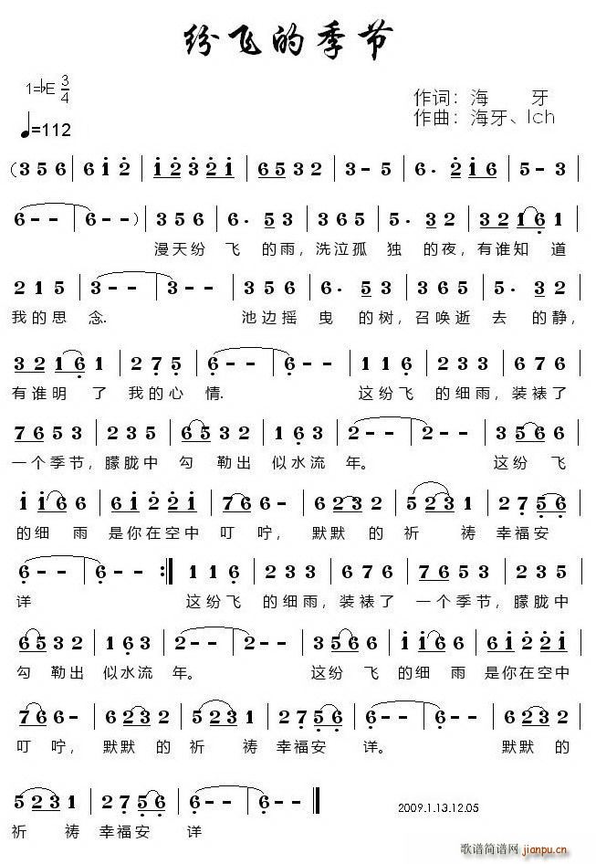 [五字歌谱]纷飞的季节(海牙词曲)