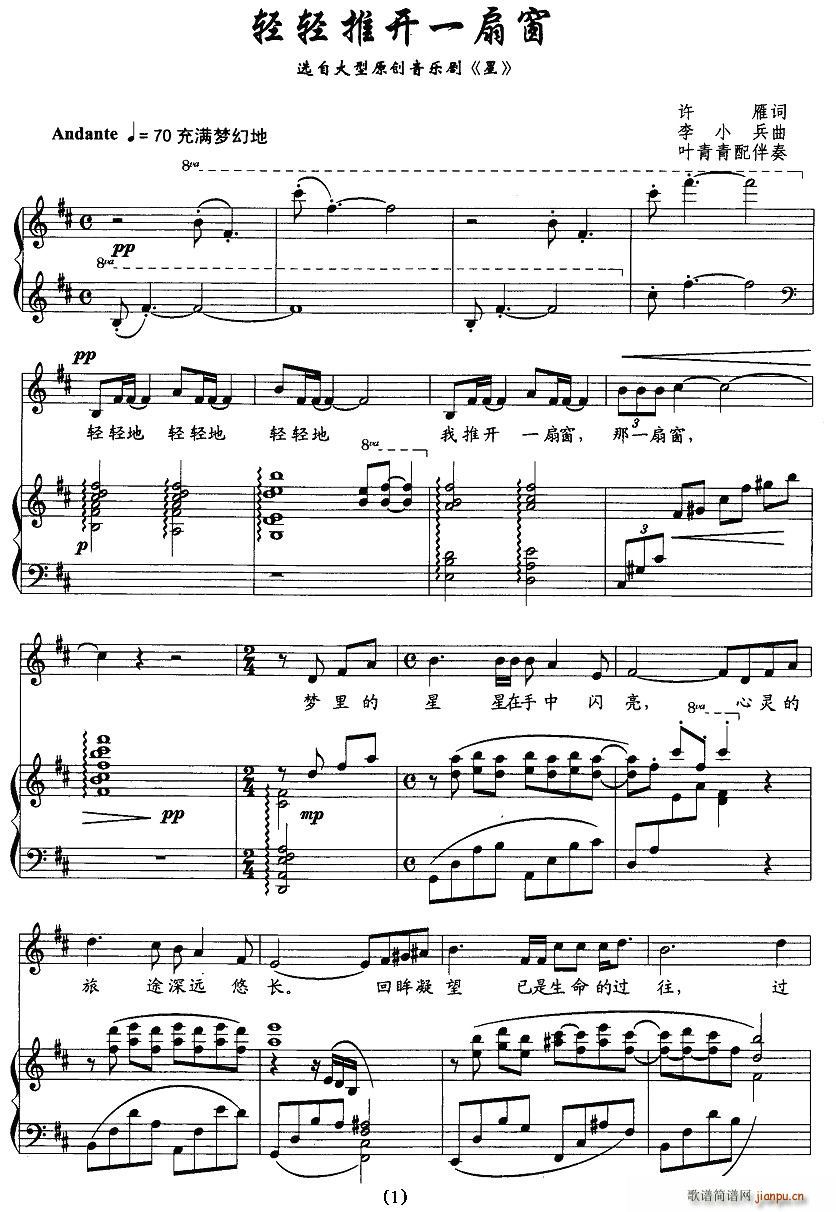 > 轻轻推开一扇窗(大型音乐剧《星》选曲 [正谱])