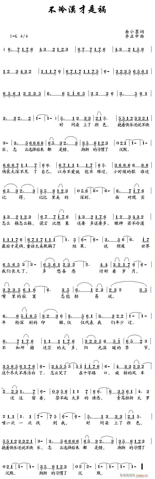 > 《不冷漠才是祸》...词:岳小墨 曲:李正中
