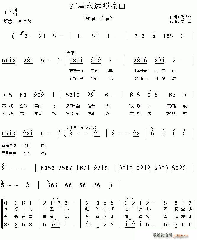 [七字歌谱]红星永远照凉山