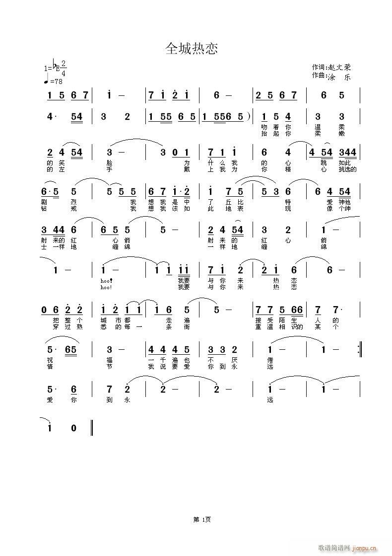 [四字歌谱]全城热恋 赵文荣词 涂乐曲