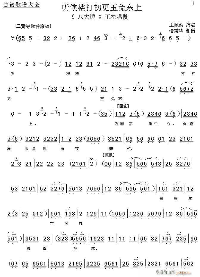 听谯楼打初更玉兔东上-京剧(京剧曲谱)1