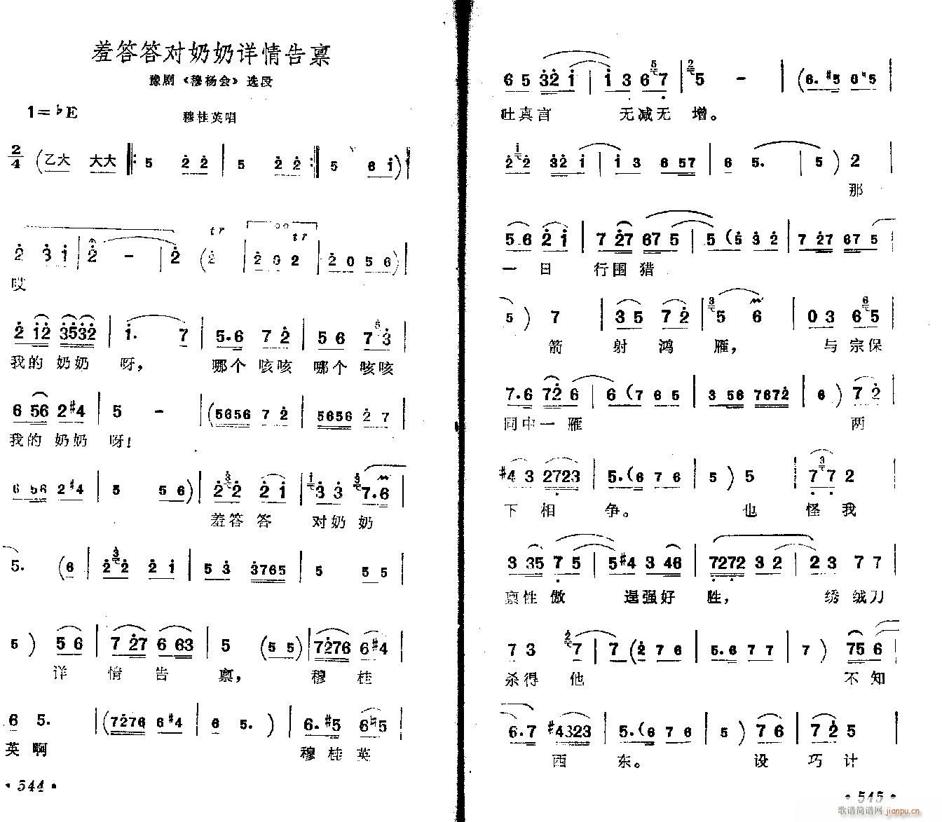 [豫剧曲谱]羞答答对奶奶详情告禀-豫剧