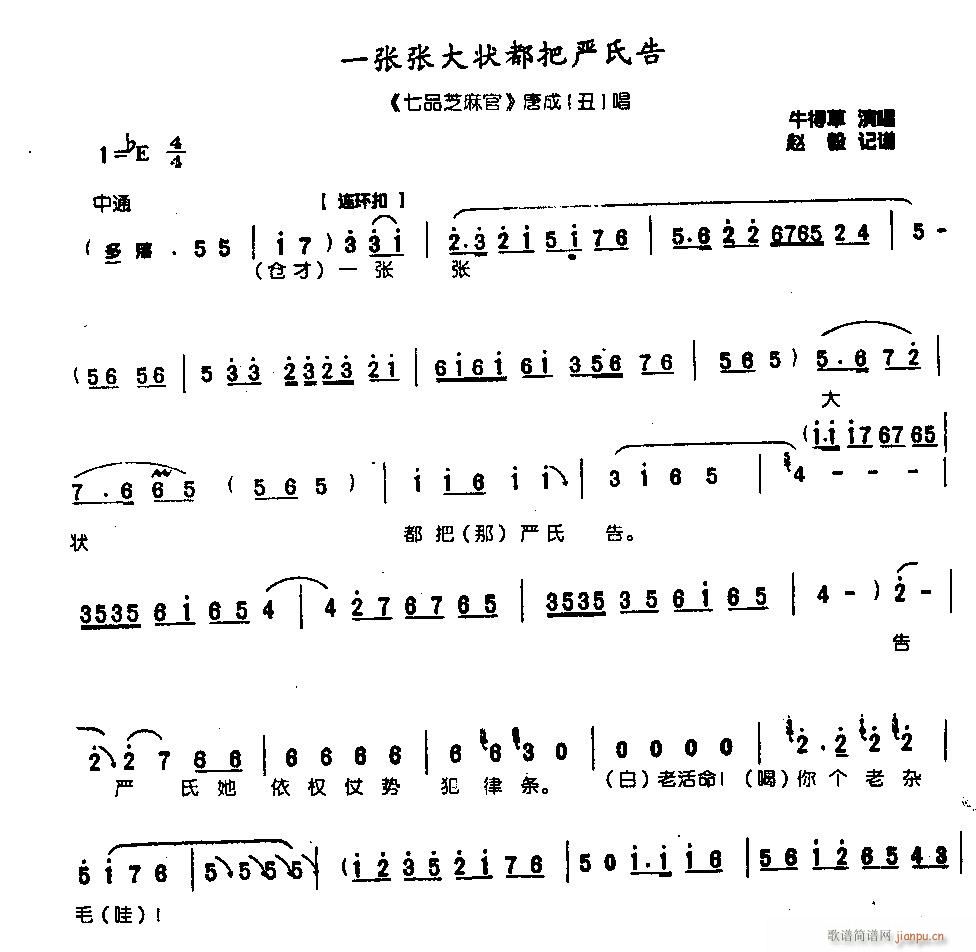 [豫剧曲谱]豫剧 一张张大状都把颜氏告