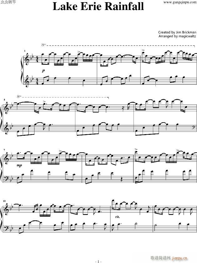 [钢琴谱]伊利湖之雨 Jim Brickman