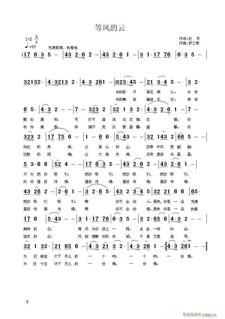 [四字歌谱]等风的云 作词: 红月 作曲: 梦之歌