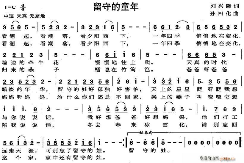 [五字歌谱]留守的童年