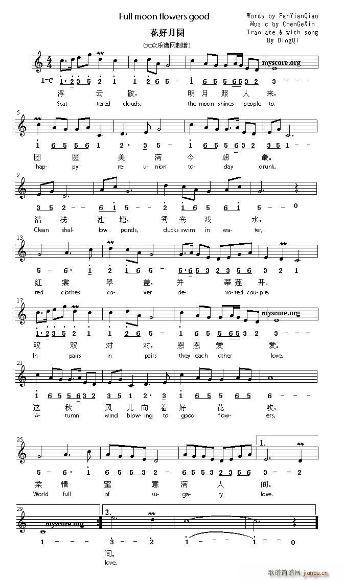 Full moon flowers good(花好月圆) (英译中文歌曲、线混排版)