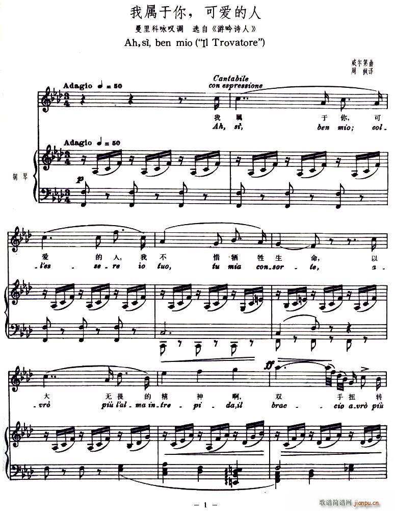 > 我属于你,可爱的人(中外文对照、正谱 [意])