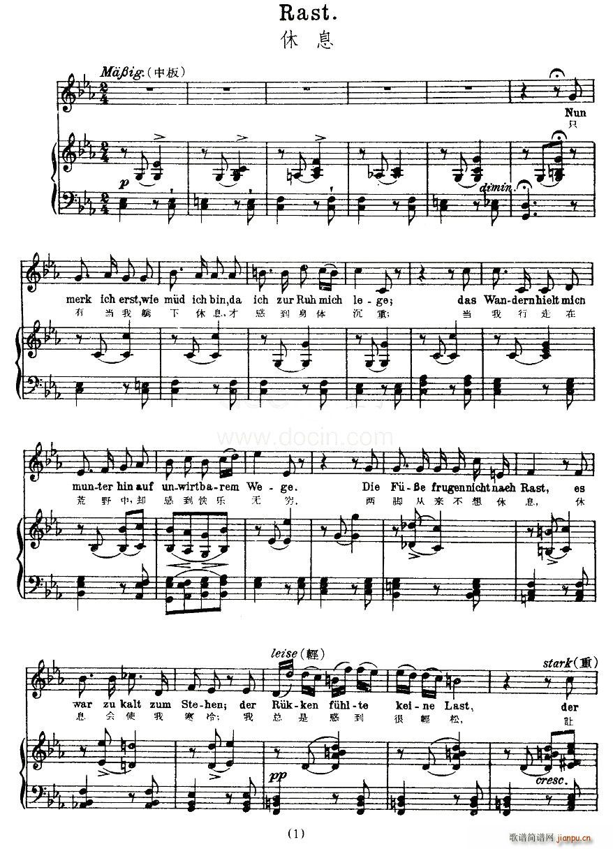 [二字歌谱]休息(中外文对照版、正谱 [奥])